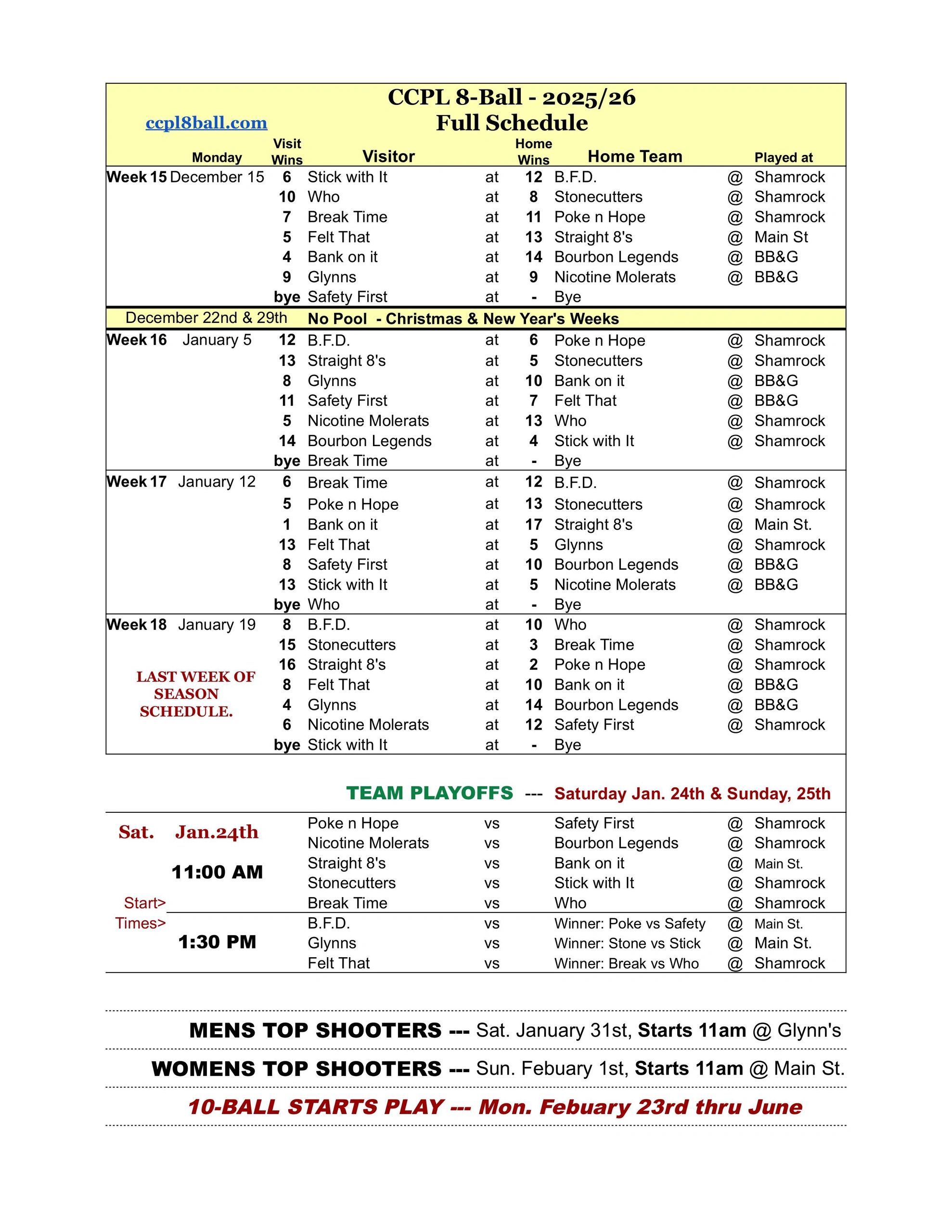 2025-26 CCPL8BALL Full Schedule